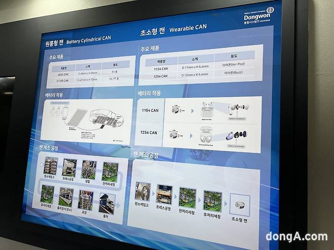 작년에는 충남 아산시에 원통형 배터리 캔 공장을 증설해 연간 5억 개 이상 생산 가능한 설비도 갖췄다. 차세대 원통형 배터리로 꼽히는 46파이(지름 46mm) 배터리 캔도 오는 8월 양산을 앞두고 있다. 46파이 원통형 배터리는 미국 전기차 업체 테슬라에 탑재되는 배터리 규격으로 동원시스템즈 배터리 캔이 LG에너지솔루션에 공급돼 테슬라 전기차에 탑재될 전망이다. 기존 21700(지름 21mm, 높이 70mm) 원통형 배터리 대비 용량을 5배가량 늘려 주행거리 향상에 용이하며 향후 21700 배터리를 대체하는 제품으로 주목받고 있다.