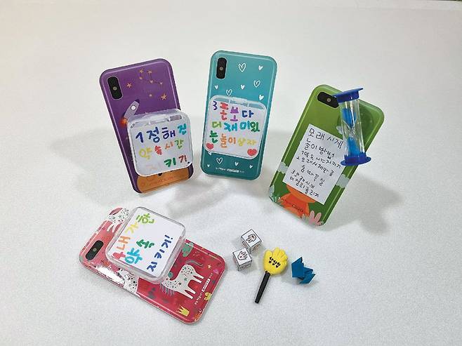 KR 단미래 어린이집 교사들은 아이들이 이런 얘기를 하는 걸 듣고 깜짝 놀랐다. 그리고 아이들이 스스로 스마트폰 사용 시간을 조절할 수 있도록 해야겠다고 판단했다. KR 단미래 어린이집은 스마트폰 거치대 기능을 하면서 놀 수 있는 장난감을 담을 수 있는 통을 아이들과 함께 만들었다. 통에는 아이들이 직접 점토나 종이로 만든 장난감, 주사위 등을 넣었다. 또 통에 ‘정해진 (스마트폰 사용) 약속 시간 지키기’ 등의 문구도 써넣었다. 15분짜리 작은 모래시계를 스마트폰 뒤에 붙이기도 했다.