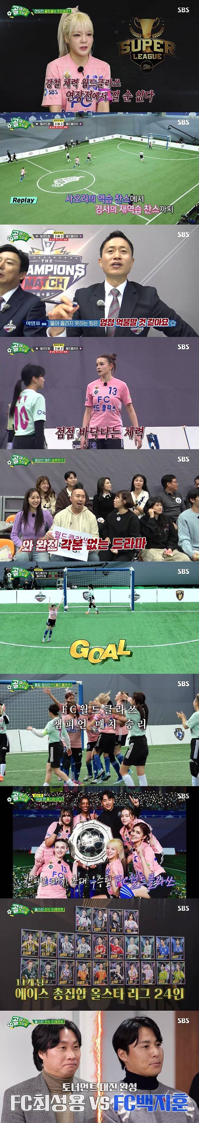 이날 방송에서는 지난주 2대 2 스코어로 연장전에 돌입한 'FC월드클라쓰'와 'FC발라드림'의 챔피언 매치 결과가 공개됐다. 이번 경기의 승리팀은 '골때녀' 최초 2관왕 등극이라는 역사를 쓰게 되어, 어느 때보다도 치열한 경기에 관심이 집중됐다.