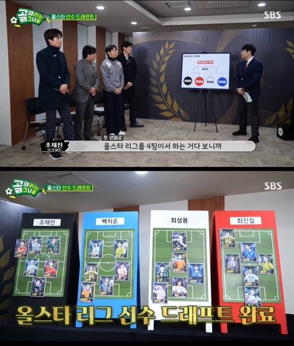 이번 올스타리그는 그동안 슈퍼리그와 컵대회 우승 경험이 있는 조재진, 최진철, 백지훈, 최성용 등 4명의 감독이 각각 자신의 이름을 내건 팀을 새롭게 선발해 경기를 치르게 되었다. 제비뽑기에서 1순위 지명권을 얻은 조 감독은 "재밌는 경기, 골 많이 넣을 수 있는 경기를 하겠다"라면서 골키퍼 포지션부터 선수를 뽑기 시작했다.