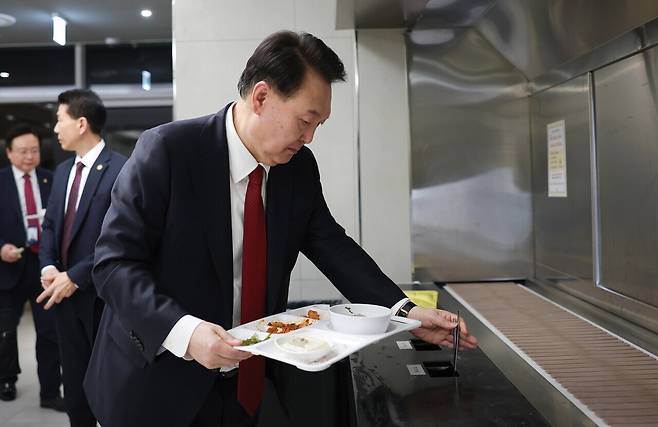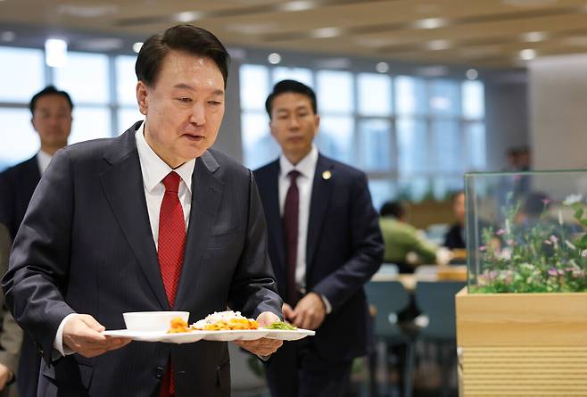 세종청사 구내식당 찾은 尹, 직접 식판 들고 "잘 먹겠습니다"