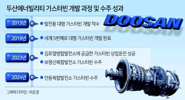 두산에너빌리티는 2013년 발전용 대형 가스터빈 개발에 착수했다. 가스터빈은 초내열 합금, 정밀 주조 등 고난도 기술과 정교한 제작이 요구된다. 기술적 난도가 높아 우리나라는 과거 가스터빈을 모두 수입했다. 가스터빈 국산화를 위해 두산에너빌리티는 정부와 손잡고 기술개발을 이어갔다. 창원 본사는 물론 미국 플로리다, 스위스 바덴에 발전용 대형 가스터빈 개발을 위한 별도의 연구개발 (R&D) 센터를 설립했다.