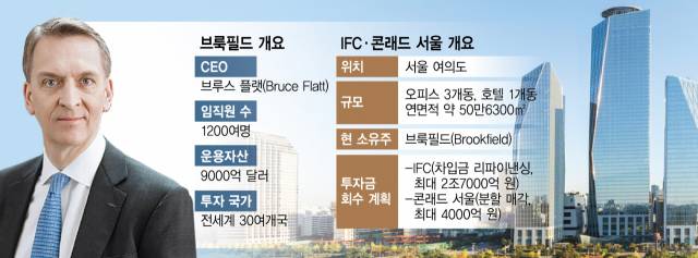 7일 투자은행(IB) 업계에 따르면 플랫 CEO는 이달 중하순께 2022년 이후 처음으로 한국을 방문하기로 했다. 플랫 CEO는 1990년 브룩필드에 입사해 2002년 CEO에 오른 회사 내 입지전적인 인물이다. 그가 방향키를 잡은 이래 브룩필드는 빠른 성장을 거듭하며 현재 전 세계 30개 이상 국가에 투자하는 회사로 거듭났다. 브룩필드가 운용하는 글로벌 자산 규모만 9000억 달러가 넘는다. 플랫 CEO는 특히 2016년 브룩필드가 서울 여의도에 있는 IFC 서울 3개 동과 콘래드 서울을 총 2조 5500억 원에 각각 인수한 뒤부터 한국 시장에 대한 관심을 키우기 시작했다.