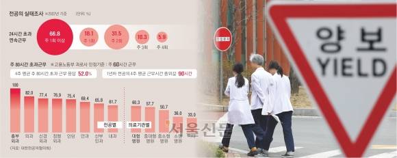 전공의 절반 “4주째 80시간 근무”