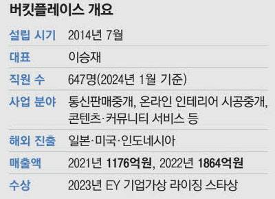 인테리어와 생활소품을 비롯한 라이프스타일 분야 슈퍼 어플리케이션(앱) '오늘의집'을 운영하는 버킷플레이스는 한국을 대표하는 유니콘(기업가치 1조원 이상 비상장 스타트업) 기업이다.