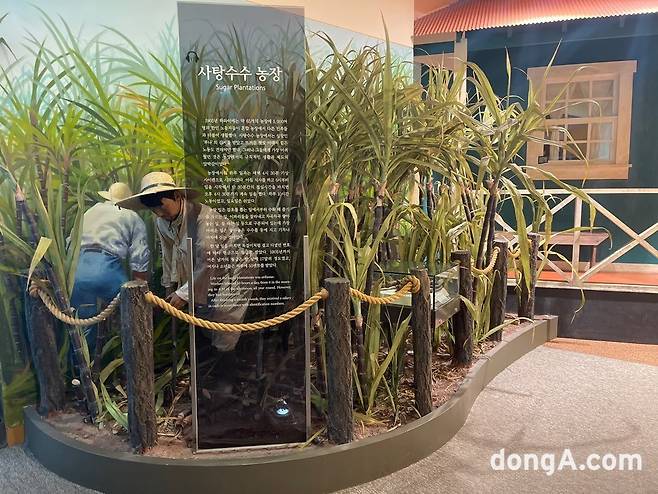 전시품 가운데 ‘반고’는 사탕수수 일꾼들이 목에 걸고 다녔던 번호표다. 다달이 반고 번호에 따라 월급을 받았다. 남자는 월 17달러, 여자와 아이들은 하루 50센트였다. 사탕수수 농장 관리자의 혹독한 감시 아래 영양결핍과 더위를 참아내며 돈을 벌어야 했던 일꾼들의 고통이 그대로 전해지는 듯하다.