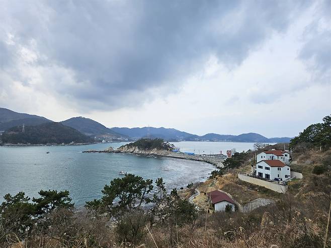 햇살도 환한 길을 한참 걷다 보니, 마을 뒷태가 점점 드러났고 바다가 가까울 수록 바람이 높았다. 높은 전망대까지 올라가니 거가대교도 보이고 부산 가덕도 연대봉도 가깝게 보였다. 저만치 아래 쪽엔 출렁 다리도 보였지만 연로하신 부모님을 모시고 제법 언덕진 길을 따라 올라왔기에 더는 모험을 할 수 없었다. 다음엔 좀 더 넉넉하게 돌아보자고 여지를 남겨두고서 돌아섰다.