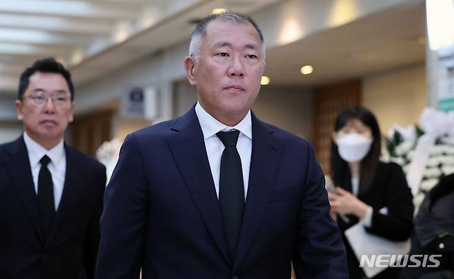 [서울=뉴시스] 조성우 기자 = 정의선 현대차그룹 회장이 8일 오후 서울 종로구 서울대학교병원 장례식장에 마련된 고 김영삼 전 대통령 부인 손명순 여사 빈소 조문을 마친 뒤 나오고 있다. 2024.03.08. xconfind@newsis.com