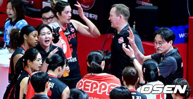 작전타임 갖는 페퍼저축은행 이경수 감독대행 [사진]