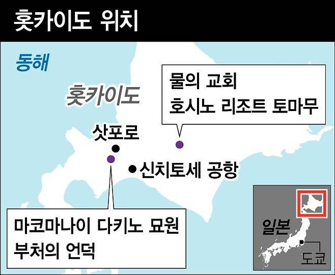 ‘건축 투어’는 요즘 주목받는 여행 장르다. ‘안도 다다오 건축 여행’만한 게 없다. 더구나 일본에서 하는 여행이라면 더더욱 말이다. 일본 북쪽 홋카이도에는 그의 대표작 중의 하나인 ‘물의 교회’와 ‘부처의 언덕’이 있다. 일본 정부 관광국 자료를 보면, 홋카이도는 지난해 12월 한달간 방문한 한국인 수가 6만1000명에 이르는 인기 여행지다. 설경과 라벤더 풍광 등으로 유명한 홋카이도 여행에서 하루 이틀은 ‘안도 다다오’에게 할애해도 좋을 터. 지난달 21일부터 2일간 홋카이도에서 안도 다다오 건축을 만났다.