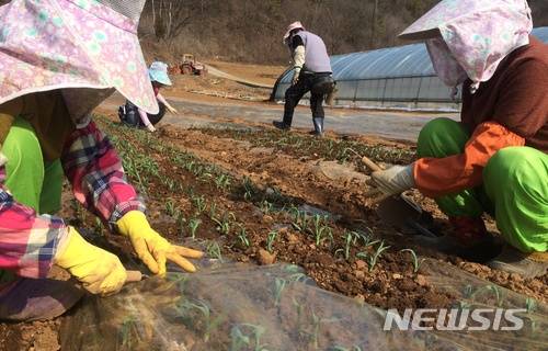 [청주=뉴시스] 이도근 기자 = 충북도농업기술원은 한지형 마늘이 월동후 생육재생기에 들어감에 따라 싹 유인(꺼내기)과 추비를 올바르게 줄 것을 농가에 당부했다.