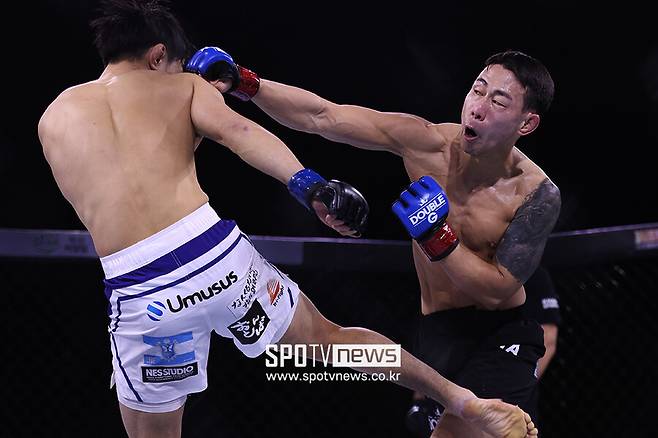 [스포티비뉴스=익산, 이교덕 격투기 전문기자] '피너클' 서동현(33, 피너클MMA)이 이도겸(33)과 난타전 끝에 역전 KO승을 거두고 더블지FC 페더급 잠정 챔피언에 올랐다.