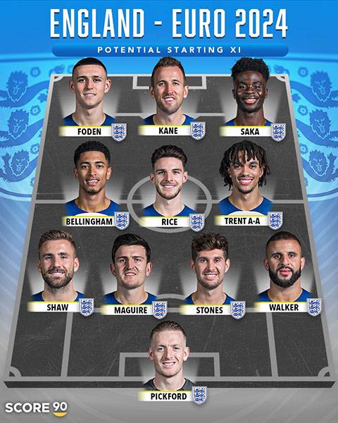 축구 콘텐츠 제작소 ‘score90’은 8일(한국시간) 공식 SNS를 통해 잉글랜드의 유로 2024 예상 라인업을 공개했다.