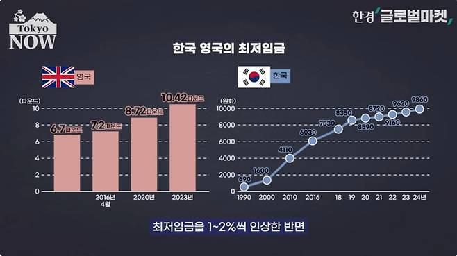 소득이 늘지 않으면 소비가 얼어붙어 '잃어버린 30년'의 장기침체와 만성 디플레에서 벗어날 수 없다는 걸 일본 정부도 잘 알고 있다. 이 때문에 기시다 후미오 총리는 2035년 무렵까지 평균 최저임금을 1500엔까지 올린다는 목표를 내걸었다. 광역 지자체장 선거 공약으로 최저임금 인상을 내거는 후보자도 늘고 있다.