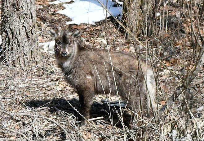 지난 8일과 9일 천연기념물 산양을 세 번이나 만났다. 야생동물을 좋아하는 기자는 기품 넘치는 산양을 언제 한번 알현하려나 오매불망했는데, 이틀간 세 번이나 목격한 것이다.