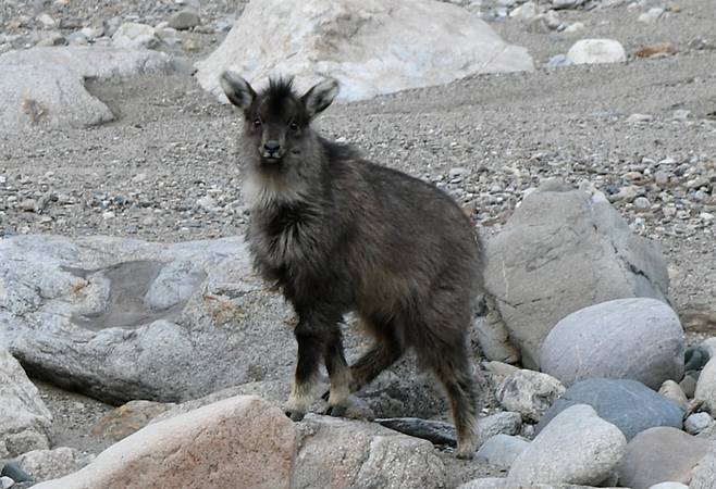 | ▲ 강원도 태백과 경북 봉화 접경지역 강변에서 만난 천연기념물 산양. 이 기품 있는 모습을 보라. |
