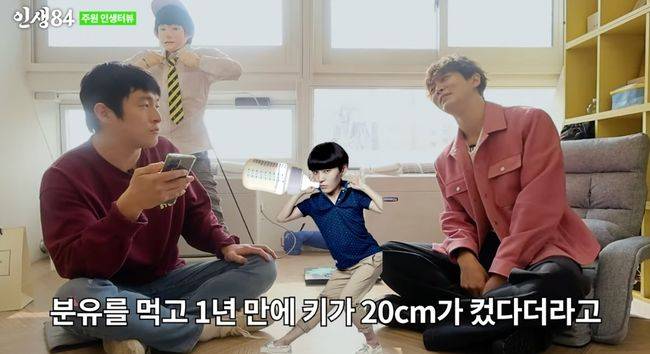 주원은 중2때까지 키가 안 커서 분유를 먹고 1년 만에 키가 20cm가 컸다는 일화를 공개해 놀라움을 자아냈다.