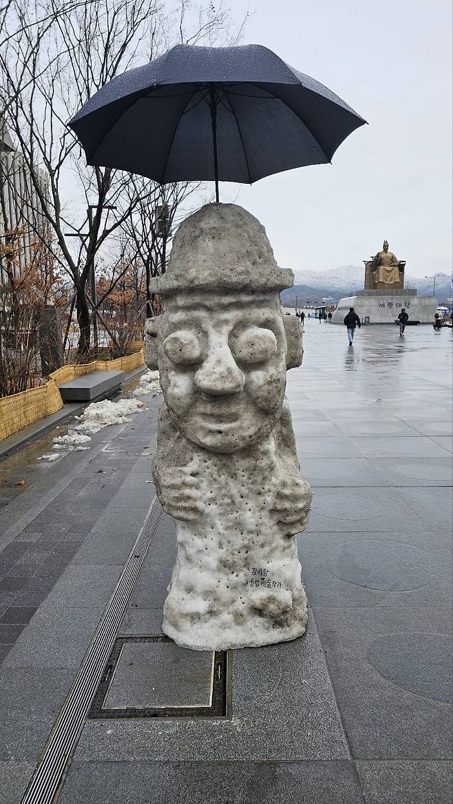 제주 하르방이 서울 나들이 하신 걸까요. 지난겨울 광화문광장에 서 있던 눈 하르방. 실용도자기 작가가 만든 작은 명물이었답니다.
