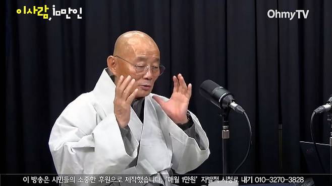 | ▲ 명진 스님이 지난 2월 29일 사단법인 ‘평화의길’ 이사회를 앞두고 <오마이TV> ‘이 사람, 10만인’과 인터뷰했다. |