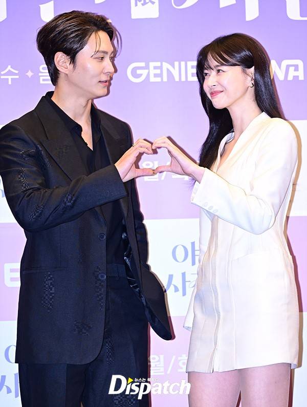 주원과 권나라는 하트 포즈로 로맨틱한 분위기를 연출했다.
