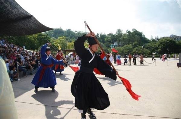 | ▲ 2013년 9월 15일 남산골한옥마을에서 열린 무예24기 공연 당시 '기창'을 선보이는 기자의 모습 |