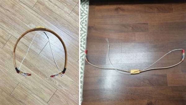 | ▲ 활 시위를 풀었을 때 각궁(왼쪽)과 카본 활(오른쪽)의 모습 |