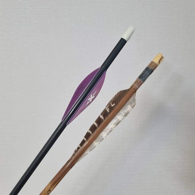 | ▲ 카본 화살(왼쪽)과 죽시(오른쪽) |