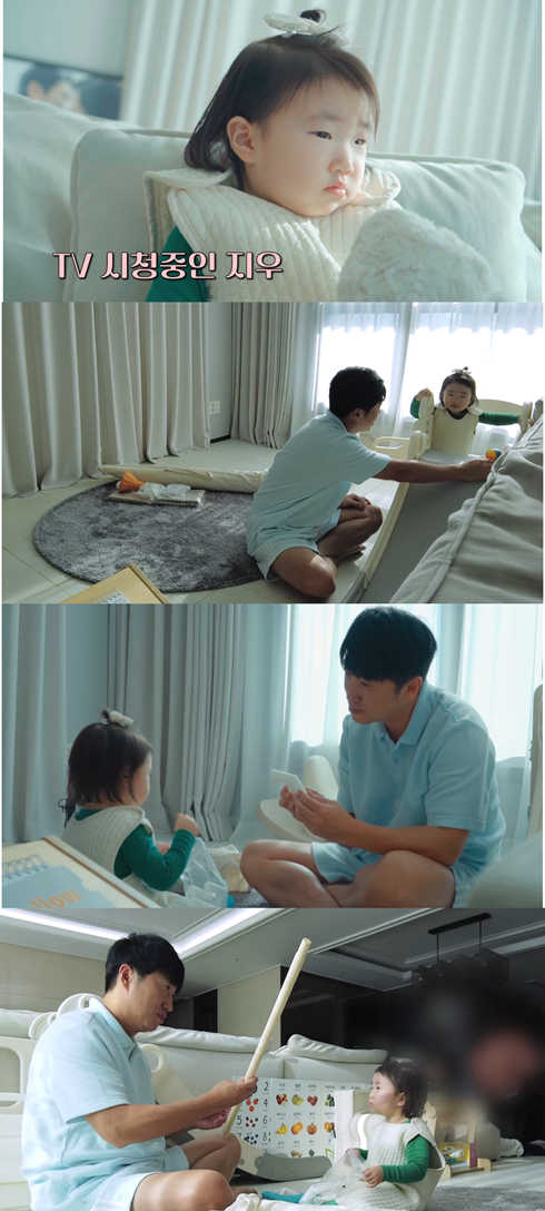 이날 장동민은 TV를 시청하던 첫째 딸 지우에게 "(TV) 보면서 먹으면 안 돼. 바이바이"라면서 아빠다운 모습으로 시선을 끌었다.
