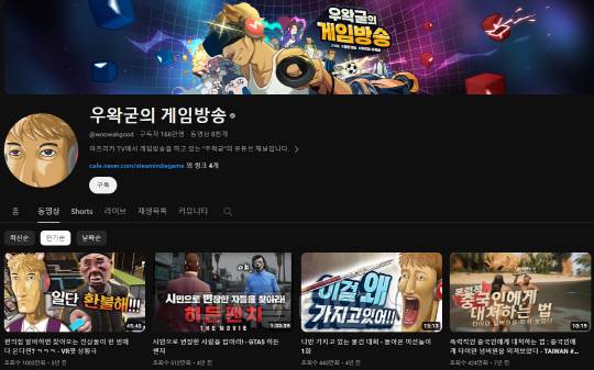 1위를 차지한 '우왁굳의 게임방송'은 구독자 166만 명, 누적 조회 수 19억 4700만 회를 보유한 채널이다. '버튜버계의 선두주자'로 불리는 채널 운영자 우왁굳(본명 오영택)은 요즘 연일 화제를 낳고 있는 6인조 버추얼 걸그룹 '이세계아이돌'을 기획한 장본인이기도 하다. 우왁굳은 큰 코와 말처럼 긴 두상이 특징인 아바타 '왁두'를 앞세워 독창적 게임 콘텐츠를 선보여 인기가 높다. 마인크래프트, VR챗 등의 게임을 플레이하며 남다른 입담을 과시하는 영상들로 즐거움을 선사한다는 평이다. 대표 영상은 VR챗 게임 속에서 재미있는 상황극을 연출한 "편의점 알바하면 찾아오는 진상들이 한 번에 다 온다면"으로, 1000만 회를 웃도는 높은 조회 수를 올리고 있다.