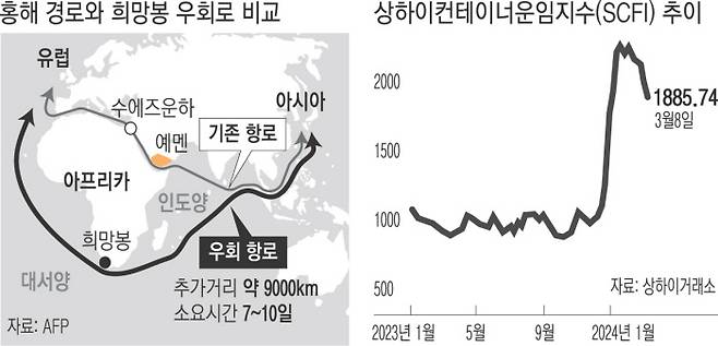 꽉 막힌 홍해 뱃길…쪼그라든 수출 경쟁력
