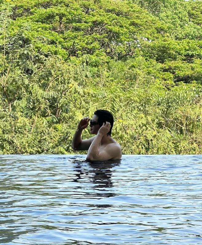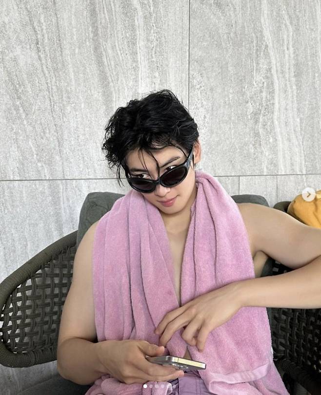 가수 겸 배우 차은우가 방콕 수영장에서 휴가중인 근황을 공개했다.
