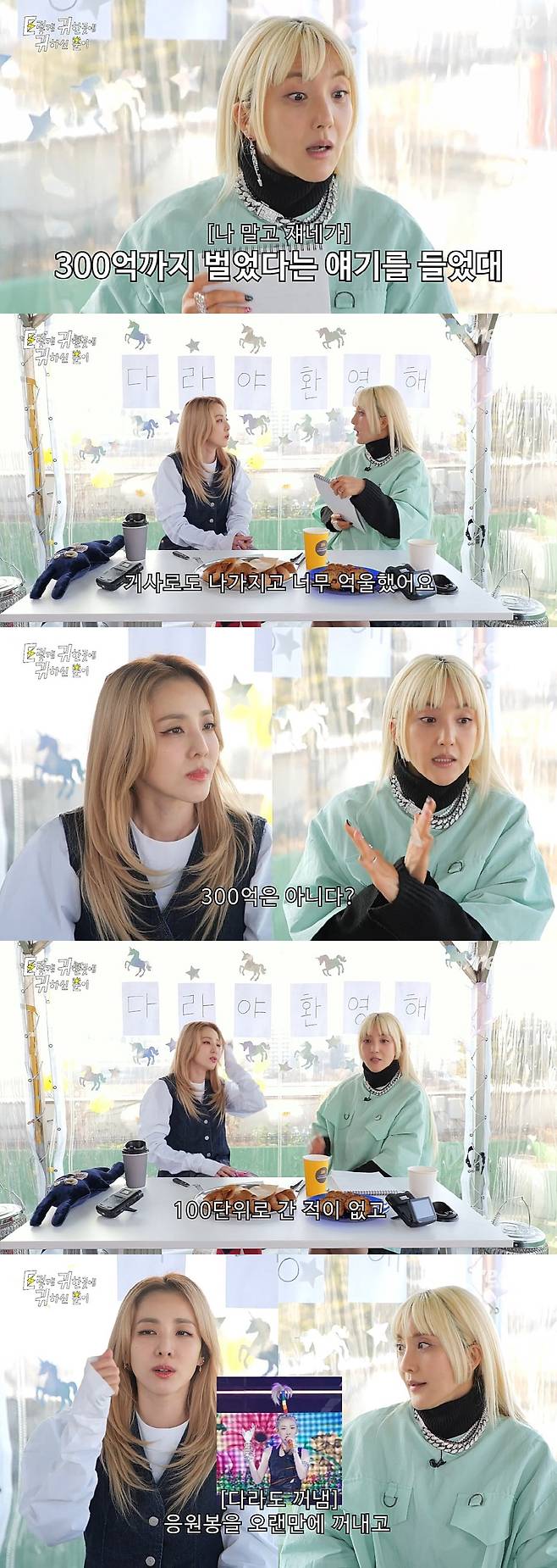 이에 산다라박은 "기사로도 나가서 너무 억울했다"며 "100억 단위로 간 적이 없다"고 해명했다.