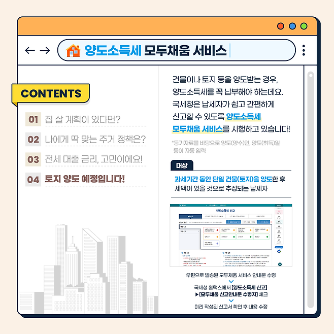 4. 양도소득세 신고, ‘모두채움 서비스’로 쉽게 하세요!