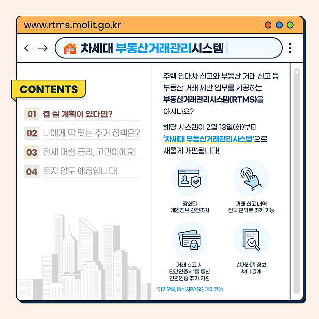 아파트 층별 실거래가 정보 등을 제공하는 ‘차세대 부동산거래시스템(rtms.molit.go.kr)’을 아시나요? 지난 13일 수요자들이 실거래가를 더 정확하게 파악할 수 있도록 시스템을 개편하고, 아파트 실거래가 정보 공개 범위가 ‘동’과 ‘거래 주체(개인·법인·공공기관·기타)’까지 확대됐습니다.
