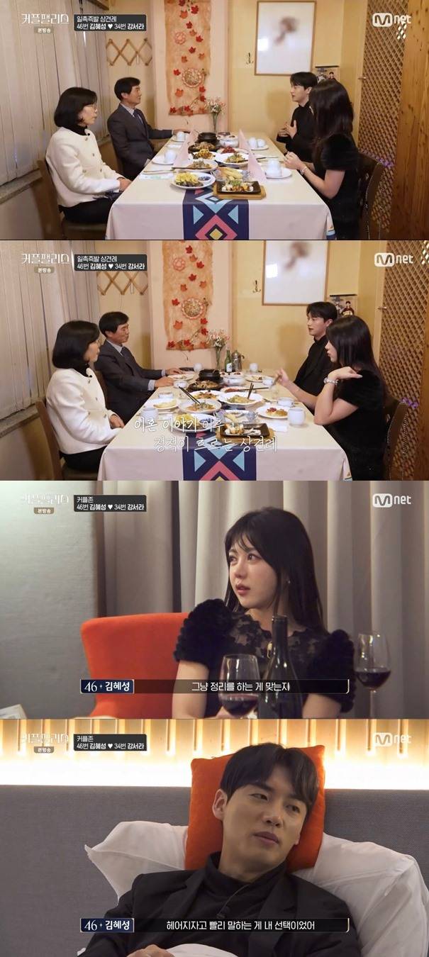 12일 방송된 Mnet '커플팰리스'에서는 46번 김혜성과 34번 강서라가 강서라의 부모님을 모시고 상견례 자리를 가졌다.