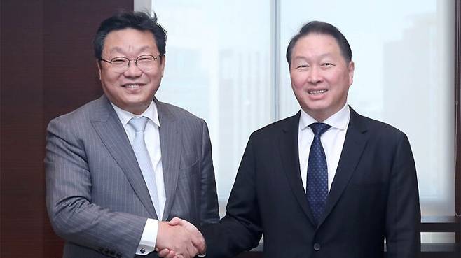 최태원 대한상공회의소 회장이 서울 중구 대한상의 회관에서 주형환 저출산고령사회위원회 부위원장과 면담했습니다.