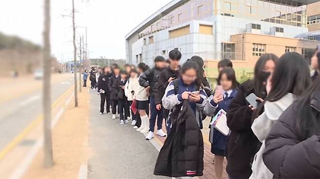 학교 앞을 지나가는 버스 노선이 6개에 불과하고, 배차 간격도 길다 보니 하교 시간마다 펼쳐지는 풍경입니다.