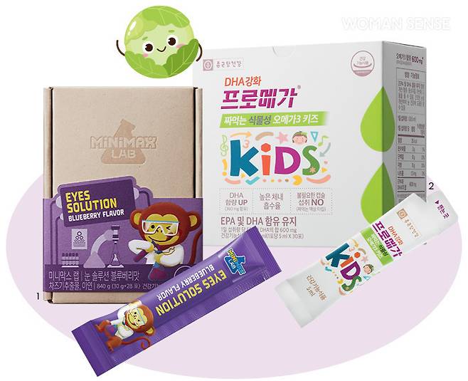 2 종근당건강 프로메가 짜먹는 식물성 오메가3 키즈 DHA 함량이 높은 어린이 맞춤형 오메가3 영양제. EPA와 DHA의 합 600mg 중 두뇌와 망막의 구성 성분인 DHA를 360mg 함유하고 있다. 100% 식물성 원료로 만들어 중금속 걱정을 덜었으며, 새콤달콤한 사과 맛으로 아이들도 맛있게 섭취할 수 있다. 30포×30일분 3만6천9백원.