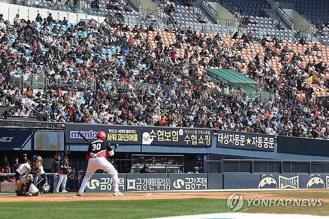(서울=연합뉴스) 김성민 기자 = 14일 오후 서울 잠실야구장에서 열린 2024 KBO 프로야구 KIA 타이거즈와 두산 베어스의 시범 경기. 관중들이 경기를 지켜보고 있다. 2024.3.14
