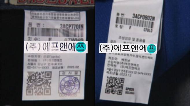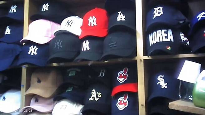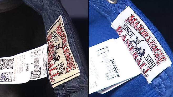 로고의 모양과 크기는 물론, 내부에 부착된 메이저리그 상표, 심지어 판매원 주소와 연락처까지 똑같습니다.