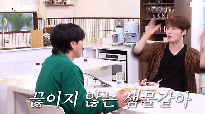 이날 김재중은 윤도현과 만나 “마흔 가까이 되니까 몸에 조금씩 변화가 오기 시작하는 구나 느꼈다. 이에 “어떻게 지내고 있나?”라는 윤도현의 주객전도 질문에 김재중은 “비행기를 많이 타는 게 체력을 저하시키는 요인인 것 같고 개인 스케줄도 있겠지만 회사를 차렸기 때문에”라고 바쁜 일상을 설명했다. 이어 “사랑은 자주 하고 있는데”라는 말에 윤도현은 연애를 하고 있냐고 물었고 김재중은 “바빠도 사랑은 꾸준히 하고 있다. 팬들과”라고 고백했다. 이에 윤도현은 “얘는 아직도 이러고 사네”라고 돌직구를 던지며 폭소를 자아냈다.