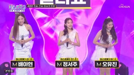 (엑스포츠뉴스 이이진 기자) '미스트롯3' 진 정서주, 선 배아현, 미 오유진이 소감을 밝혔다.