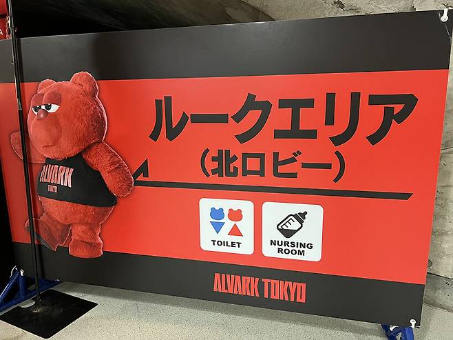 야외, 실내 다양한 컨셉 포토존이 많다. 포토존 뿐만니라 마스코트를 활용한 화장실 표지판 디자인도 기억에 남는다. 농구 전용 경기장이 아니지만 알바크 도쿄만의 색깔을 채우려는 노력이 많이 보였다.