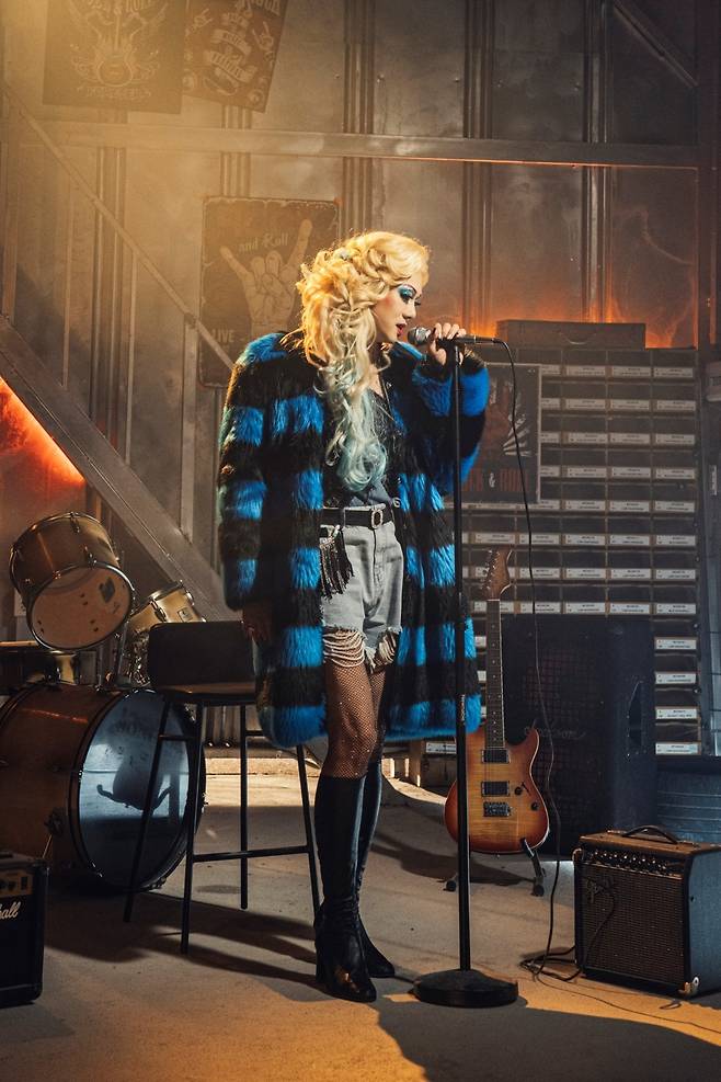 강렬한 록스타의 향기를 발산했다. 스탠드 마이크 앞에 서서 노래를 열창했다. 자동차 보닛 위에서도 포착됐다. 요염한 자세를 취했다.