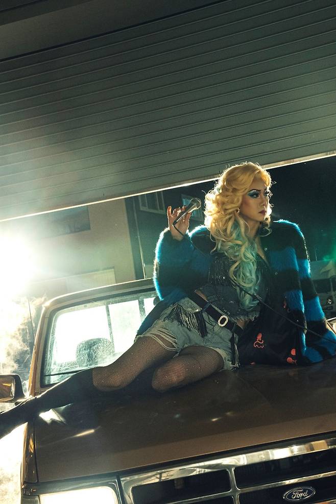 강렬한 록스타의 향기를 발산했다. 스탠드 마이크 앞에 서서 노래를 열창했다. 자동차 보닛 위에서도 포착됐다. 요염한 자세를 취했다.