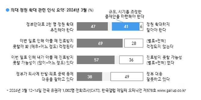 의대 정원 확대와 관련해서는 정부의 대응에 문제를 제기했지만, 여전히 개혁에 대한 지지 의견이 많았다.