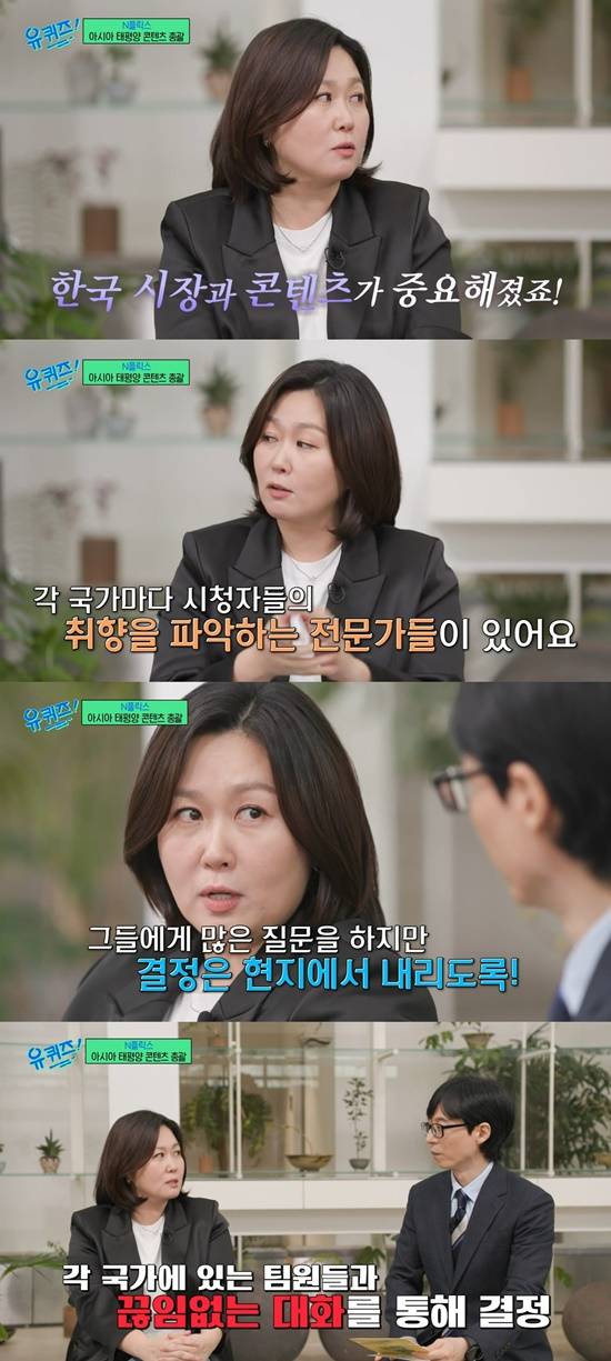 김 총괄은 "각 국가마다 시청자들의 취향을 파악하는 전문가들이 있다. 그들에게 많은 질문을 하지만, 결정은 현지에서 내리도록 각 국가에 있는 팀원들과 끊임없는 대화를 나누고 있다"고 설명했다.