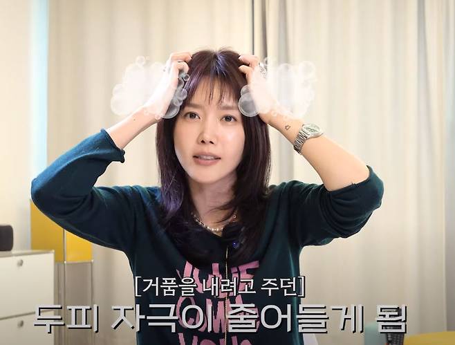 샴푸를 할 때 손에서 거품을 충분히 낸 후 두피에 얹어 롤링해 줘야 한다./사진=유튜브 채널 ‘채정안 TV’ 캡처