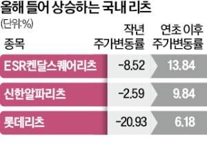 15일 한국거래소에 따르면 ESR켄달스퀘어리츠는 올해 들어 13.84% 올랐다. 신한알파리츠(9.84%) 신한서부티엔디리츠(9.95%) 롯데리츠(6.18%) 맥쿼리인프라(3.30%) 등도 상승했다. 연내 기준금리가 내려갈 것으로 예상되자 주가가 반등했다. 리츠는 금리가 하락하면 낮은 대출 금리로 부동산을 매입할 수 있다. 조달 비용이 줄어들면 리츠 주주들에게 배당을 늘려줄 수 있어 호재로 작용한다.