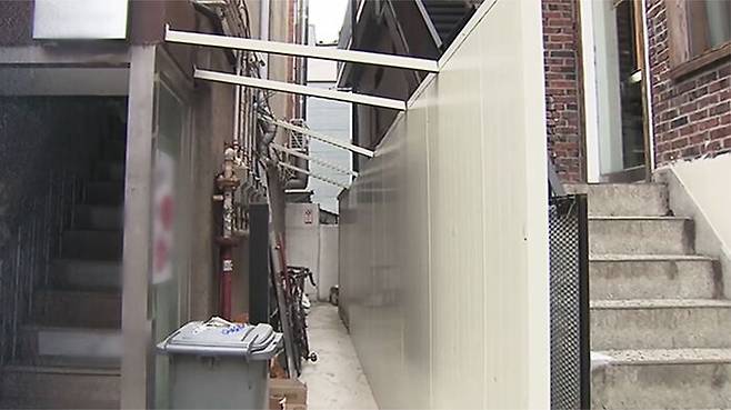 그러자 건물주가 가벽을 세우고 나선 겁니다.
